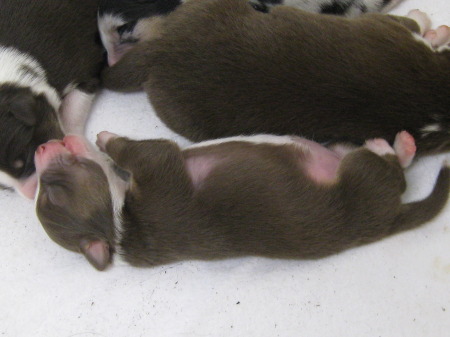 20. Tag...unser Püppchen mausert sich zur jungen Hundedame, die von den Gewichtszunahmen her gut mit den Geschwistern mithalten kann und sich im Spiel gegen die teilweise stärkeren Brüder und Schwestern behauptet ;-)
